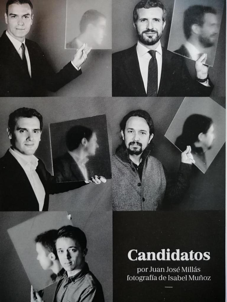 Sobre la mesa, una taza humeante de té verde, pan recién hecho, huevos de codorniz, aguacate, mermelada casera y la prensa, el sol otoñal baña la escena, huele a felicidad dominguera, todo es perfecto… hasta que su mirada se posa en la portada del suplemento dominical. Allí están 5 candidatos y una ausencia portando cada uno un espejo para mostrar ¿sus dos o más- caras? ¿Su innegable narcisismo galopante?