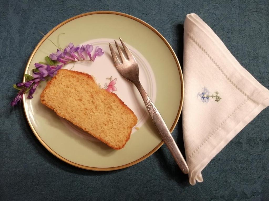 Este bizcocho huele y sabe a inocencia y felicidad, es el recuerdo de las meriendas de verano en Alcira, Valencia, en el chalé de mi amiga Mireya, hija de médico, miembro de una familia numerosa, nada menos que 7 hermanos. La abuela, Doña Pura hacía este bizcocho en una bandeja de lata grande, llanda, para toda la chiquillería, nietos y amigos, mientras el abuelo D. Manuel nos hacía engrudo para pegar decorados y nos buscaba poemas para las funciones de nuestro Club Alegría: “Margarita está linda la Mar”
