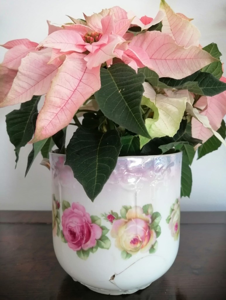 En esta taza desayunaba mi abuelo Hernán, tiene cicatrices de sus mudanzas y caídas, por el camino ha perdido el plato y el asa pero sigue en pie como tú y como yo y hoy florece de nuevo.