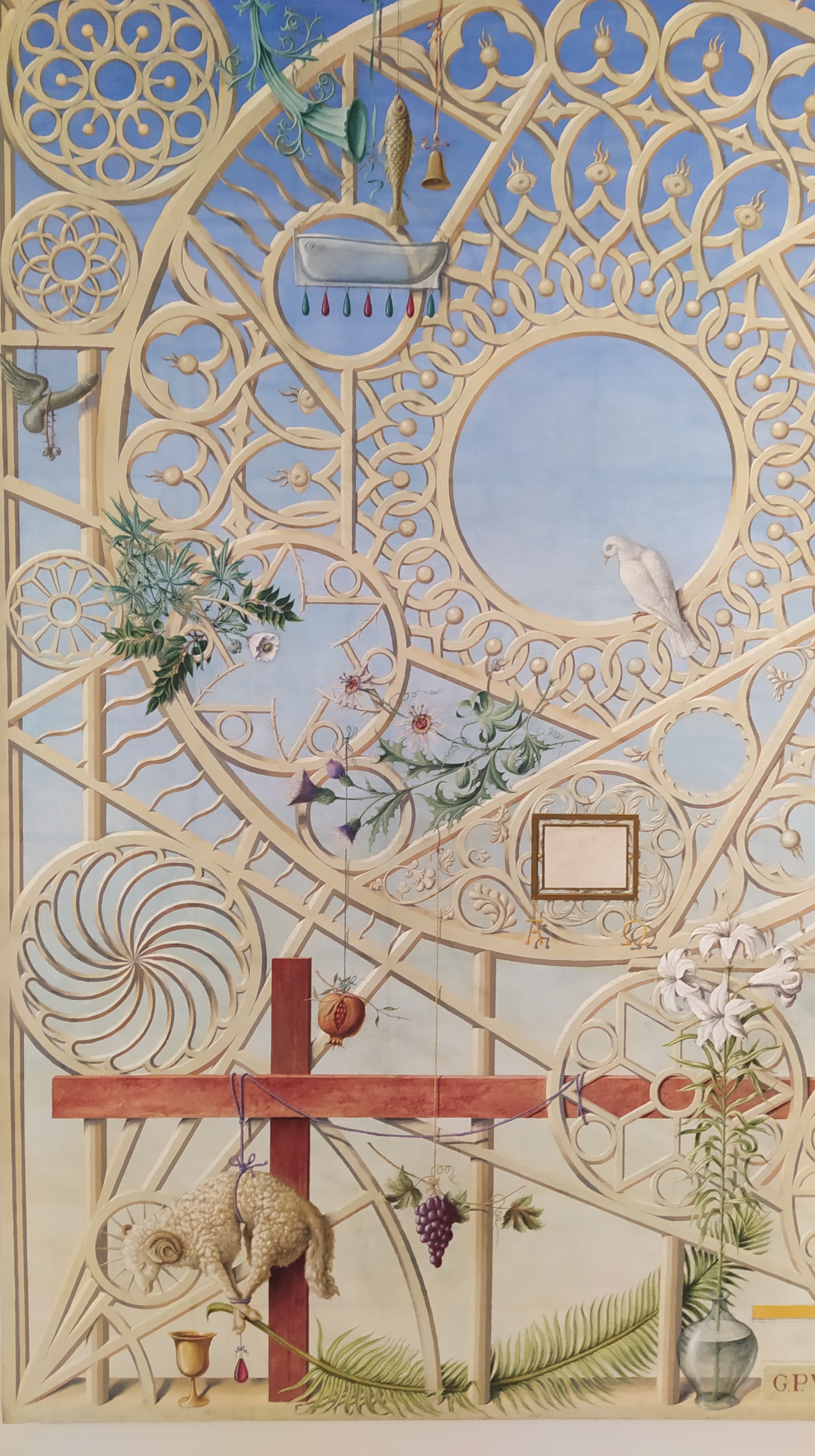 Pérez Villalta pertenece a la Nueva figuración, su obra es puro eclecticismo filtrado por su personalísimo universo iconográfico que incluye elementos cristianos y del clasicismo, la fantasía y el ornamento, en grandes lienzos con formas no convencionales. El laberinto, y en general la arquitectura, están muy presentes en su obra, como el mar, que nunca retrata con el mismo azul.