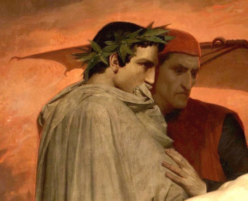 En cuanto hirió mis ojos la alta virtud que me había avasallado antes de que yo saliera de la infancia me volví para decir a Virgilio: No ha quedado en mi cuerpo una sola gota de sangre que no tiemble; reconozco las señales de mi antigua llama. (Canto XXX)