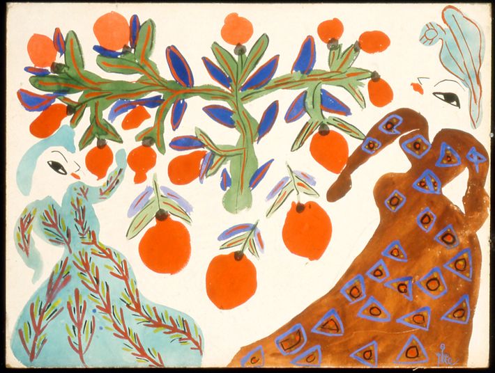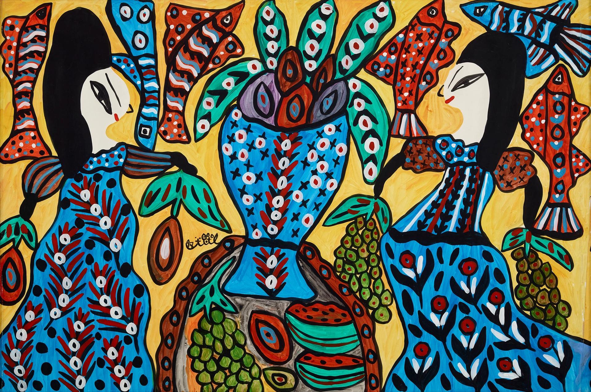 Es un misterio la obra de Baya. Enigmática su firma, una mezcla inventada de caracteres medio-árabes, medio-latinos que no se corresponden con sistema gráfico alguno. Es un misterio su vida: ¿por qué Baya, a pesar de haber sido adoptada, nunca fue a la escuela? ¿por qué fue exotizada por los artistas de su época en lugar de ser incorporada realmente a su entorno?¿fue su vuelta a Argelia una forma de exilio?¿su matrimonio una cárcel?¿fue un espíritu libre o una víctima sucesiva de diferentes formas de patriarcado? Poco sabemos en el fondo de ella. Solo que su arte está lleno de luz y que, como escribía André Breton en 1947: