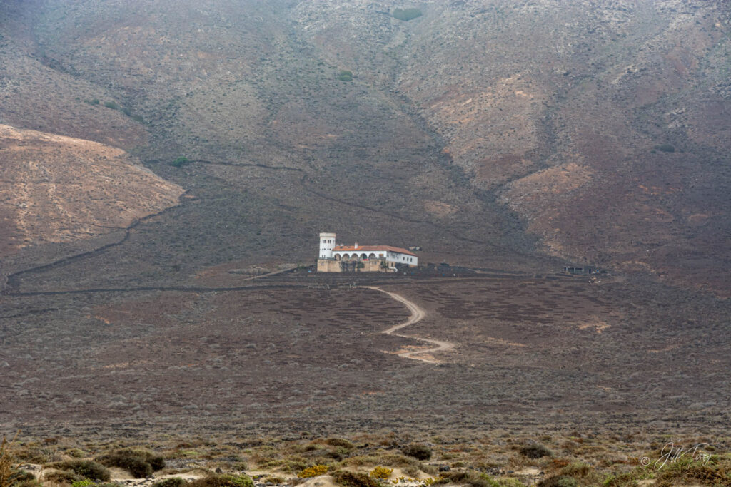 Fuerteventura acaba por el Sur en la península de Jandía, atravesada por una cordillera, azotada por vientos atlánticos y sedienta de agua. Para llegar hay que recorrer un desierto de piedras y tierra suelta, es una zona prácticamente deshabitada. Si eliges ir al sur de la península, encuentras Punta de Jandía, con su faro. Sorprendentemente, por lo recóndito y aislado del lugar, hay cerca tres restaurantes donde se puede comer un delicioso caldo de pescado. Si vas al norte, llegas a la playa de Cofete, impresionante por su aspecto salvaje e inhóspito donde a pesar de ello, hay dos asentamientos humanos: un cementerio y la Casa Winter.